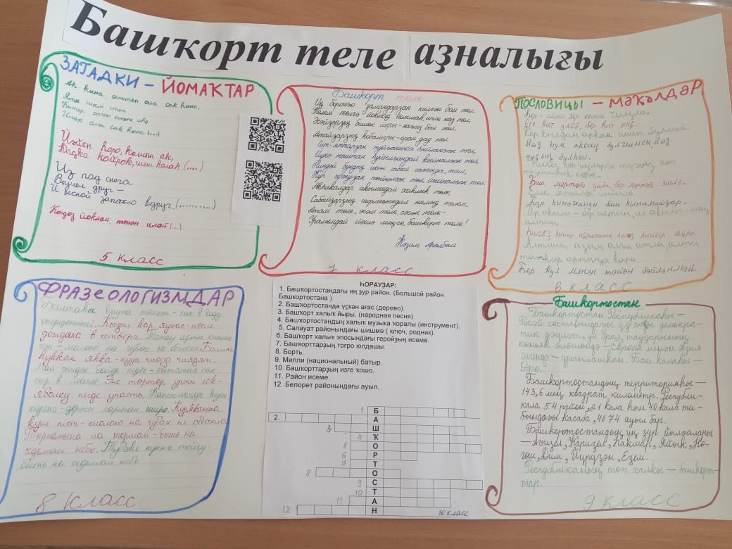 Учащиеся проверили свои знания, участвуя в викторинах «Люди Великобритании», «День английского алфавита», «Знаешь ли ты русский язык?». Победителями конкурса «Знатоки языка» стали Мирхайдаров Р.(5кл.), Лыгин А. (6кл.), Бурдова А. (7кл.), Галиахметов А. (8кл.), Щепарев К. (10кл.)Ученики приняли участие во Всероссийской акции «Письмо солдату». С интересом дети участвовали в интеллектуальной игре с QR кодами, в оформлении стенда на башкирском языке, показали свое умение красиво писать.