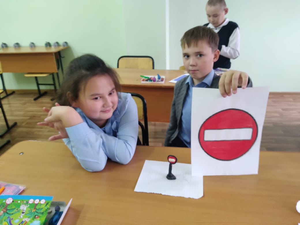 В рамках внеурочной деятельности ЮИД для учащихся 3 класса было проведено занятие по теме «О правилах дорожного движения», во время которого ребята знакомились с ПДД, с группами дорожных знаков, с правилами оказания первой медицинской помощи, отвечали на вопросы. В заключении занятия ребята смастерили из пластилина дорожные знаки.