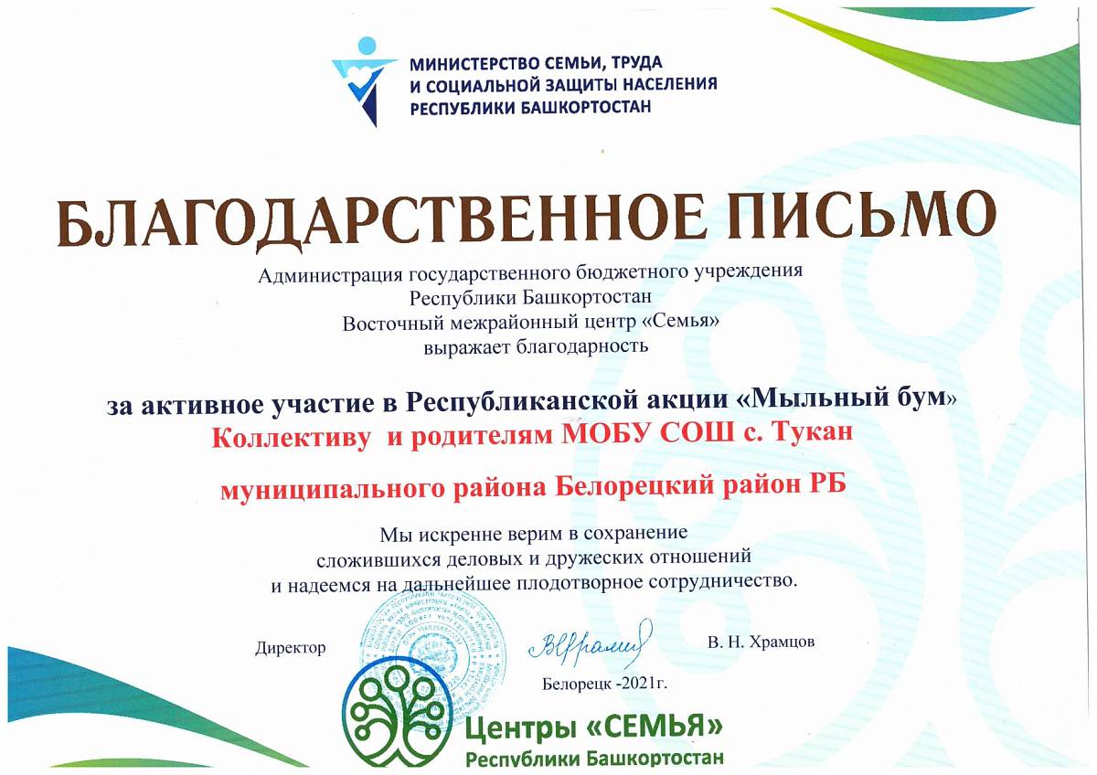 Благодарность за участие в республиканской акции "Мыльный бум"