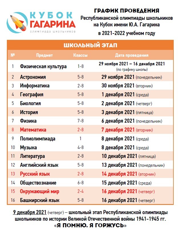 Сегодня, 29 ноября, в школах республики стартует первый (школьный) этап Республиканской олимпиады школьников на Кубок имени Ю.А. Гагарина.